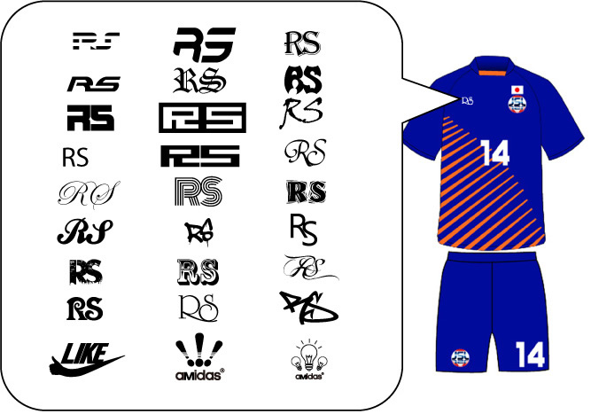 当店にあるフォント以外、オリジナルで個人名やチーム名、番号を入れる場合でも、無限に様々なフォントで入れることが可能です。 例えば、漢字や平かな、カタカナはもちろん、ハートマークや!、?などもすべて対応可能です。 背番号と胸番号、背番号とパンツ番号の組み合わせも可能です。オーダー時にご指定ください。